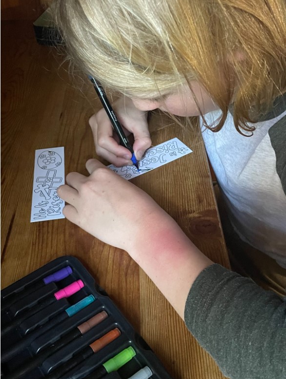 We are making some small baggies with kid and adult gospel booklets to give out to neighbors, friends, coaches, etc. My boys will spend time coloring Easter bookmarks, praying for those we’ll give them to, and our friends will hear about what we believe! Here is what the baggies look like, and here are the links. Want to join us?